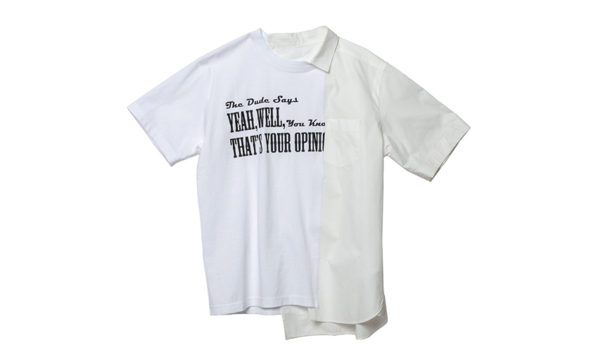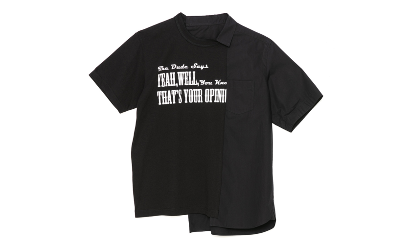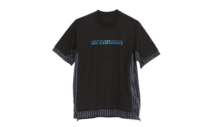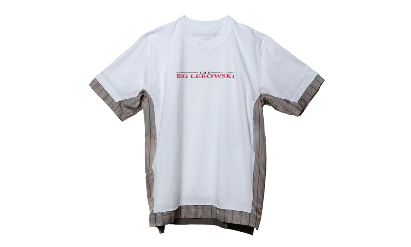 系列打造了一系列以 sacai 解构美学主打的 T 恤单品,不同材质的混搭注入影片的片名 logo 和片中主角 The Dude 的对白,潮流感与辨识度极强。